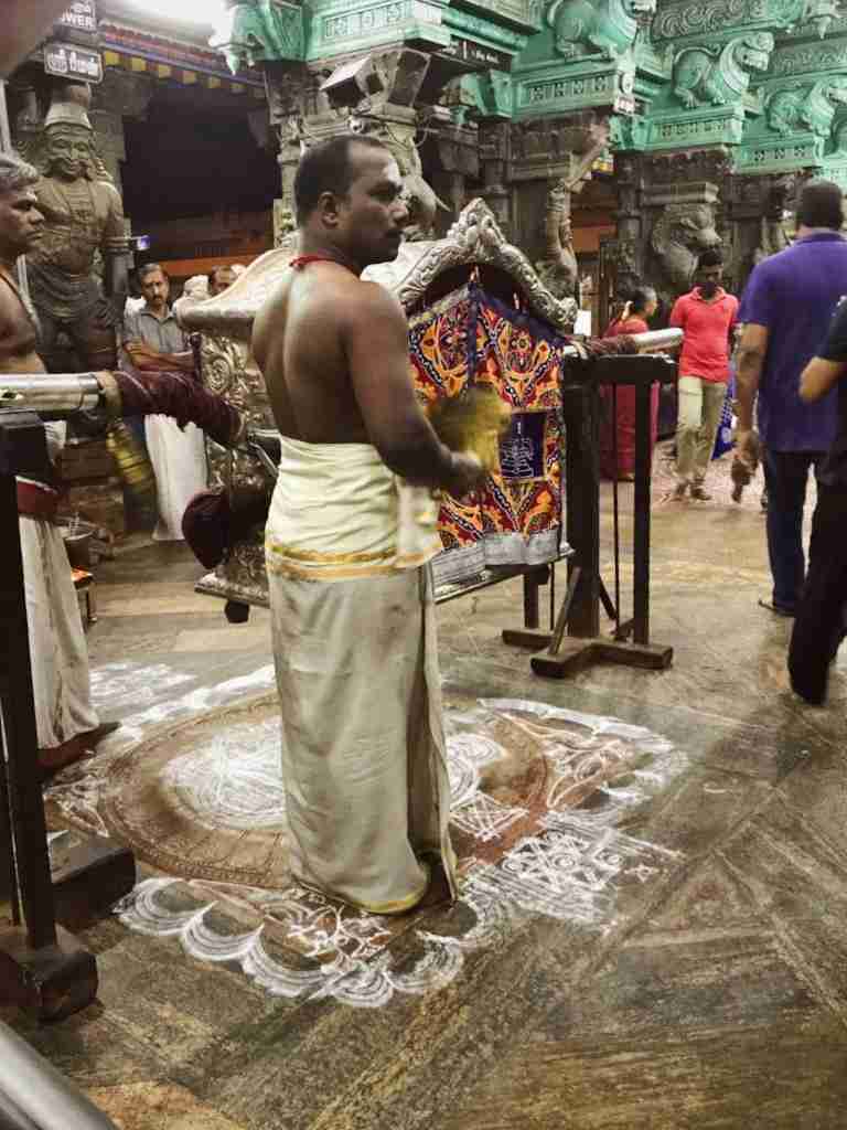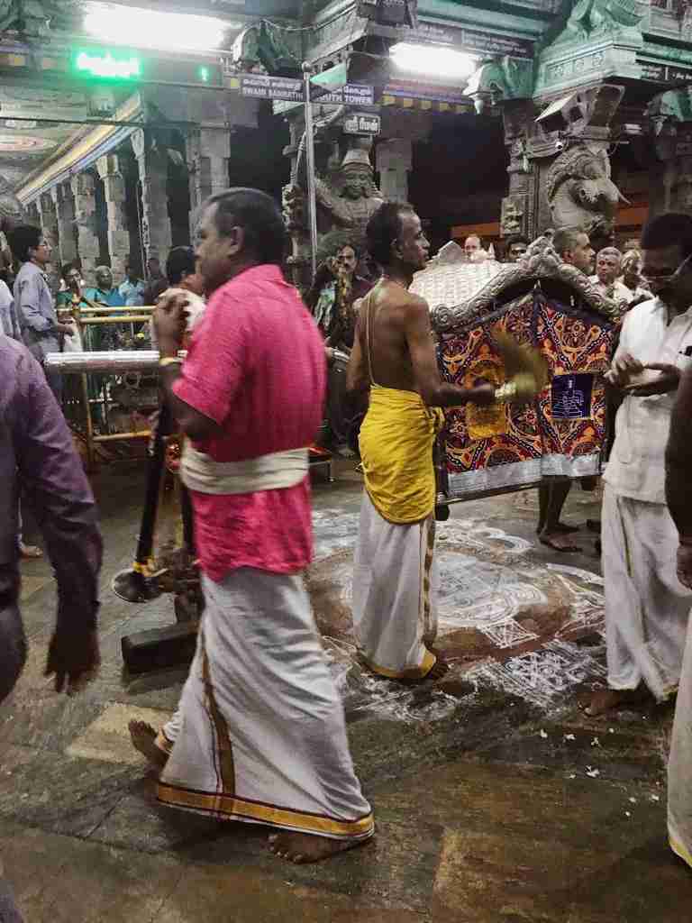 מבוקר ועד ערב, עולים לרגל אלפי מאמינים מקומיים למקדש סרי מינקשי. קדושים ואורחים מכל הודו והעולם כולו, עטופי סארים מוזהבים או בחצי גוף חשוף, צבועים, מאופרים באפר לבן, מתמסרים לפולחן הדתי בכל נפשם. המקדש וסביבתו שוקק מזריחה ועד אחרי השקיעה.