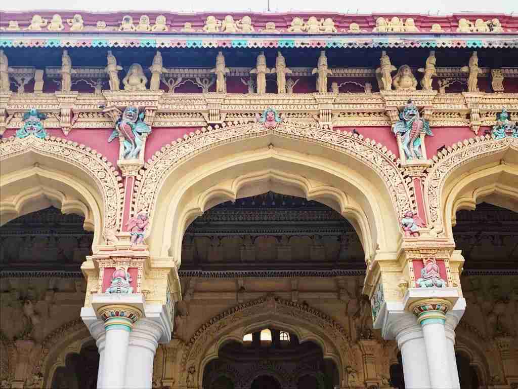הארמון שנבנה בשנת 1636 עבור שושלת נאייק מהווה דוגמה קלאסית לבניה הודית בהשפעה ערבית. בארמון יש 248 עמודים ענקיים (בגובה של 18 מטרים והיקף של מטר וחצי) וכיפה מגולפת מדהימה המונחת על עמודים ללא תמיכת קורות בחלק העיקרי של הארמון. ארכיטקטורה תמיד עניינה אותי. להתבונן בעוצמה של הגובה, בריבוי העמודים, בגילופים של הכותרות והכיפה – תענוג אמיתי.