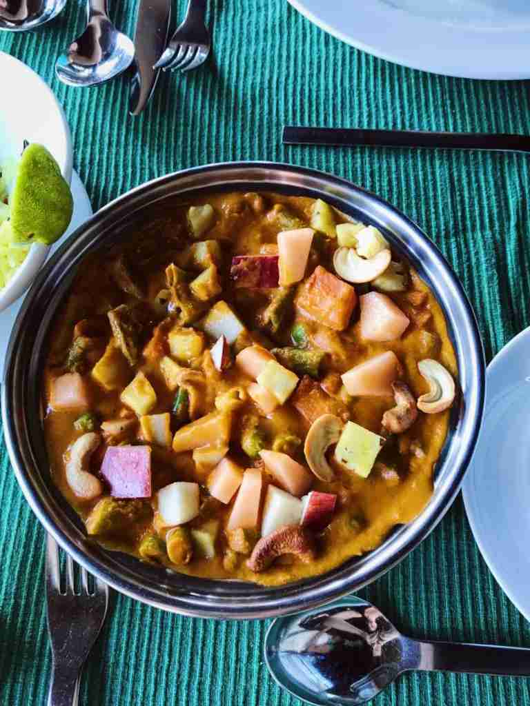 רקחו במיוחד עבורינו סדנת אוכל. כזאת המבוססת על הצומח בלבד, בדיוק כפי שבחרנו. לא הצלחתי לספור את המנות שהודגמו לנו, שהכנו בעצמנו, שאכלנו. מערבולת של טעמים, של ריחות וצבעים. לא תמיד מקדישים לבישול ההודי מקום של כבוד בתכנון המסע בהודו אבל אני חושבת שהחוויה הכוללת עוברת גם שם.